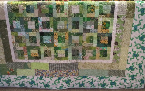 Olin hiljattain tikannut tilkkupeiton, jonka nimi oli Laineita lammella. Olin edelleen hyvin 'vetisissä' tunnelmissa, kun sain tikattavakseni tämän tilkkupinnan. Siinä sammakot polskivat iloisesti, mitä lie tekivätkään. Ja kuinka ollakkaan ehdotin Kutulampea nimeksi työlle. Siitä sitten tuli Kutulampi.